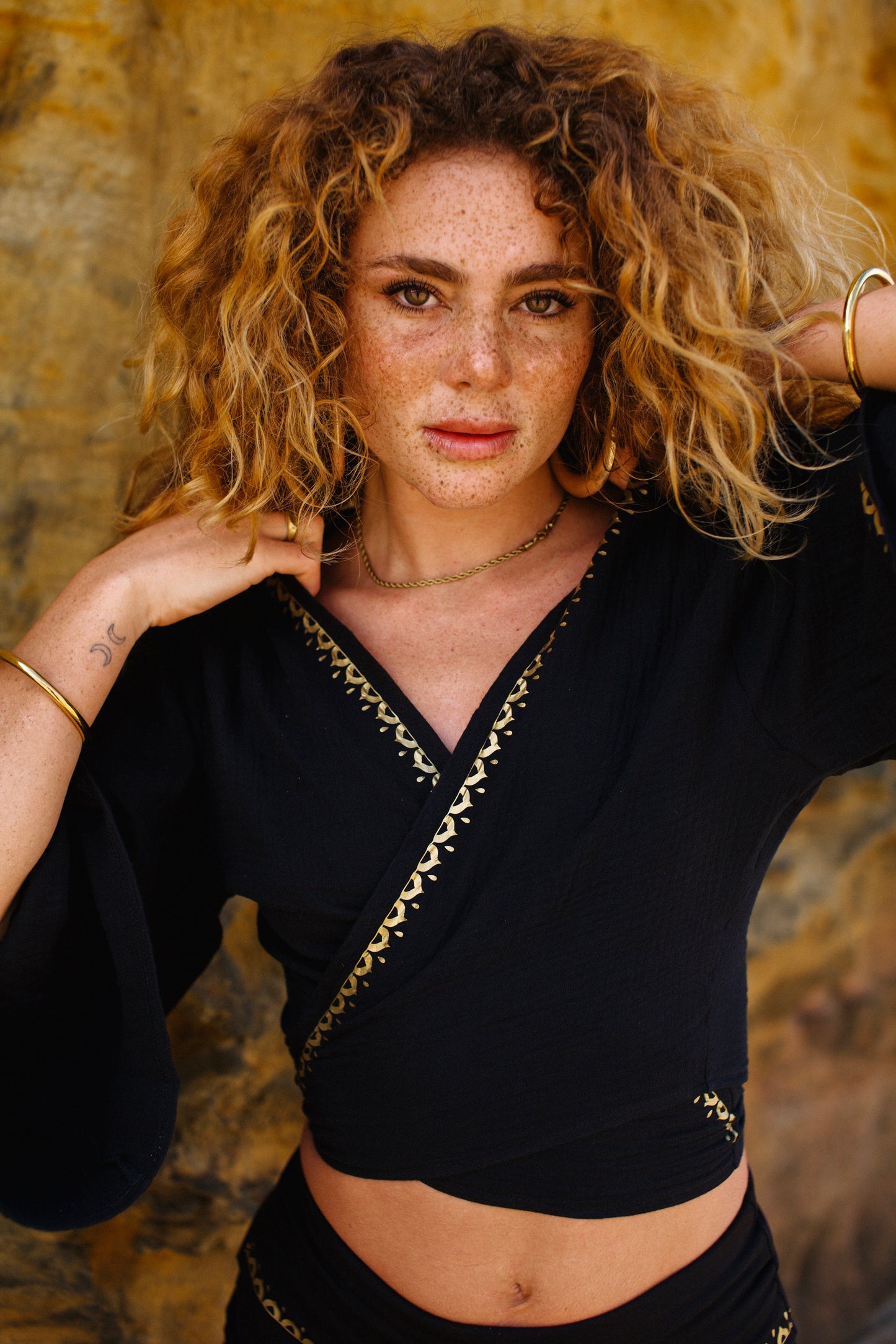 Made from eco-friendly cotton, this wrap top adapts to your curves like a second skin. Light but not see-through, it’s designed to support your movement — and your statement. With two versatile ways to wear it, Shakti brings freedom, comfort, and wild energy to every outfit.